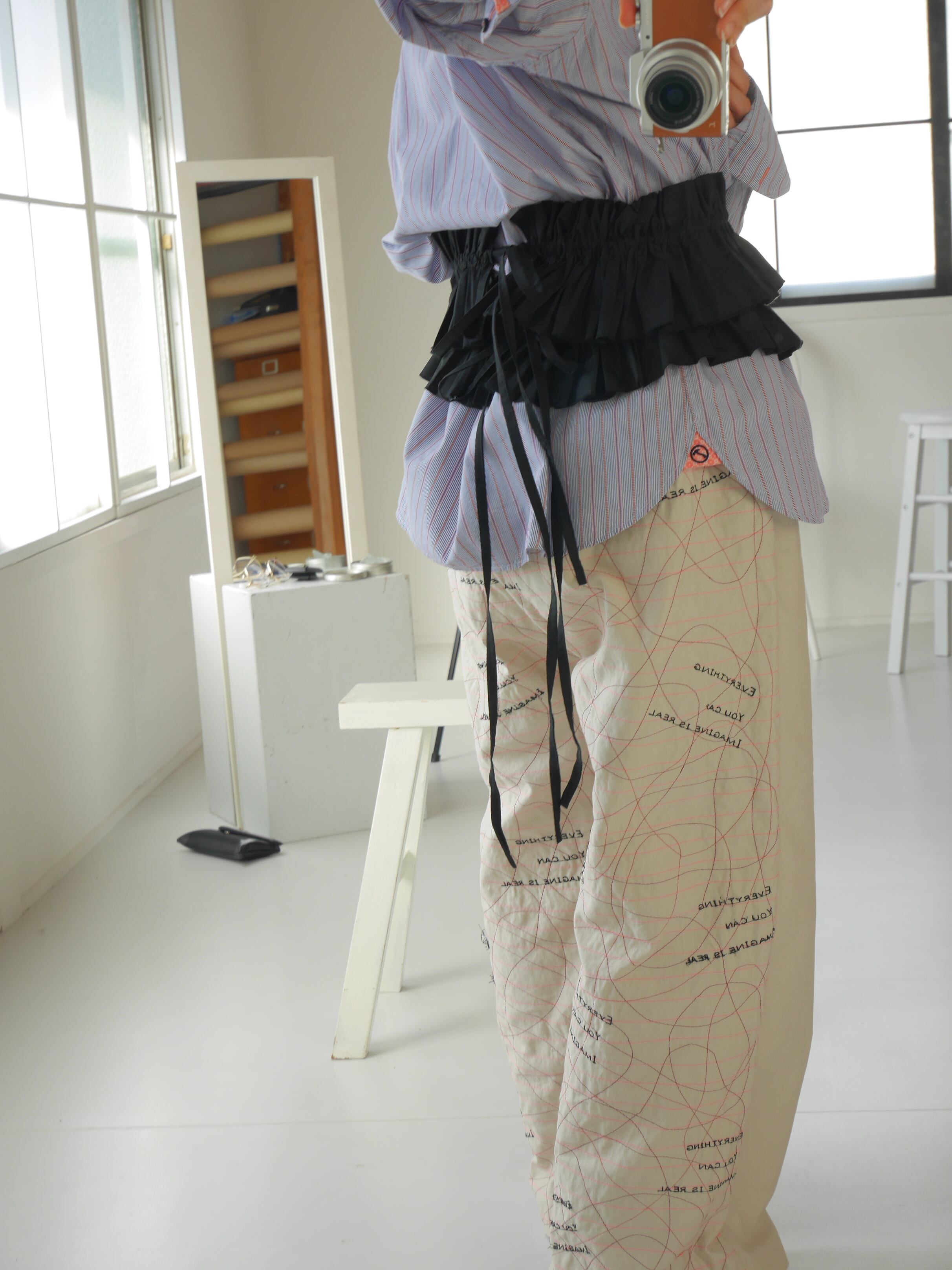 ビスチェにしてみたり、袖ぐりのフリルにしてみたり、斜めがけしたり、